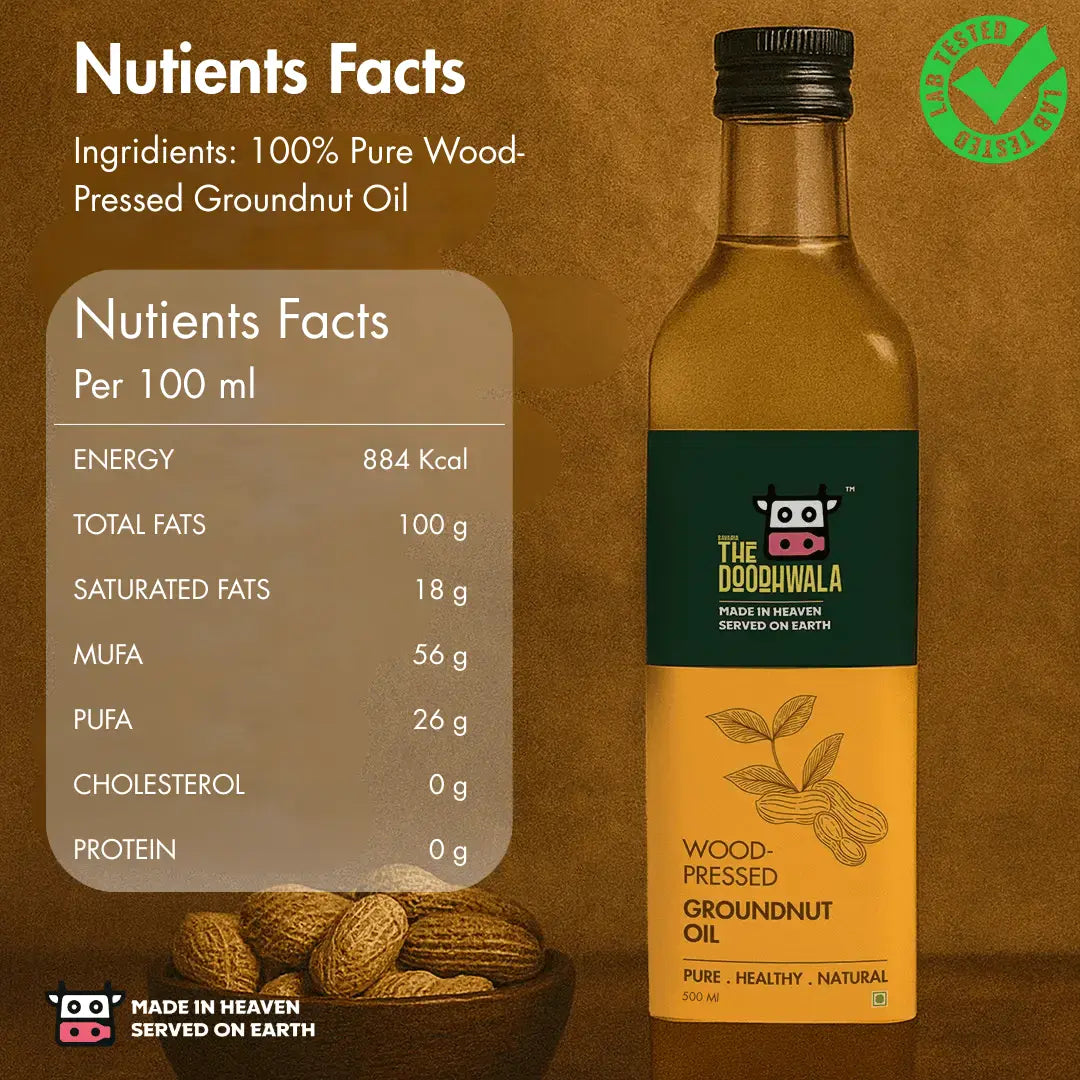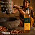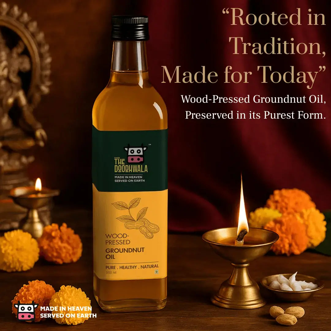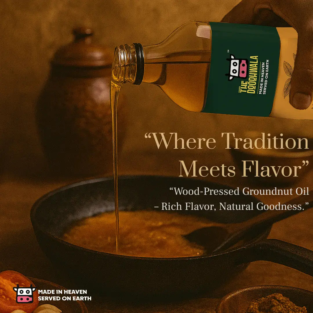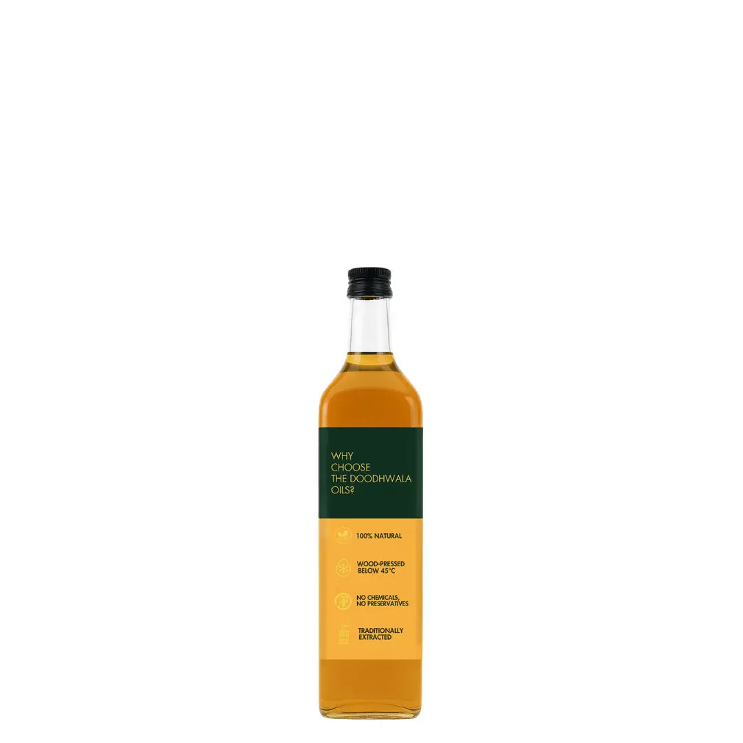 Wood pressed oil is extracted using a traditional wooden press (ghani) at a low temperature. This method retains the natural nutrients, aroma, and flavor of the oil, unlike refined oils which go through heat and chemical processing.